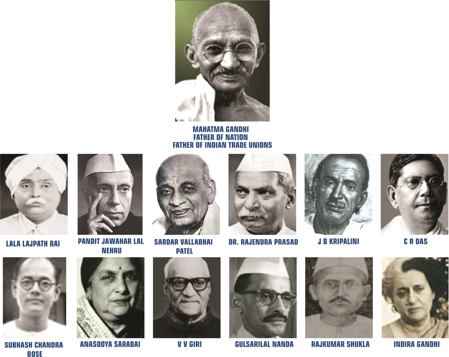 കോണ്‍ഗ്രസ്സ് നേതാക്കളായ ലാലാ ലജ്പത്റായ് 1920 ലും, സി.ആര്‍. ദാസ് 1923 ലും, പണ്ഡിറ്റ് ജവഹര്‍ലാല്‍ നെഹ്റു 1928 ലും, സുഭാഷ് ചന്ദ്രബോസ് 1929 ലും, സുരേഷ് ചന്ദ്ര ബാനര്‍ജി 1938 ലും, വി. വി. ഗിരി 1942 ലും എ. ഐ. റ്റി.യു.സി. പ്രസിഡന്‍റുമാരായിരുന്നു.